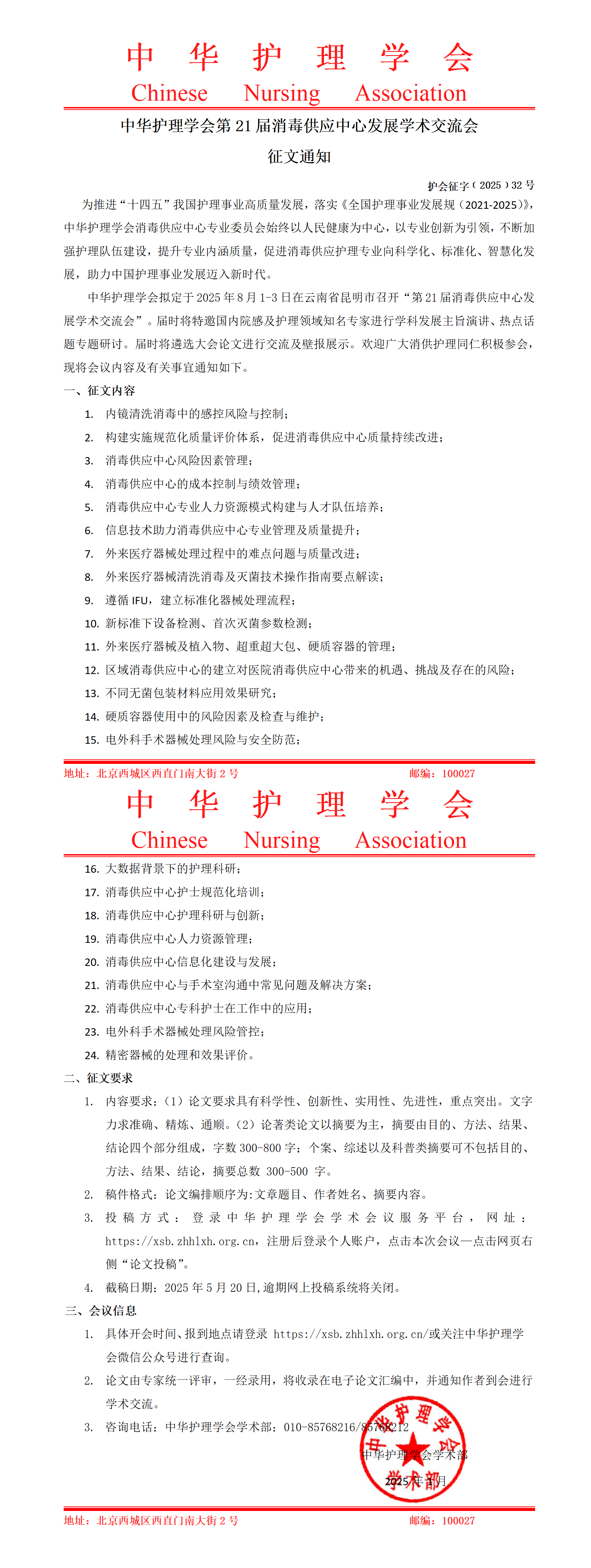 為推進“十四五”我國護理事業高質量發展,落實《全國護理事業發展規(2021-2025)》, 中華護理學會消毒供應中心專業委員會始終以人民健康為中心,以專業創新為引領,不斷加 強護理隊伍建設,提升專業內涵質量,促進消毒供應護理專業向科學化、標準化、智慧化發展,助力中國護理事業發展邁入新時代。
